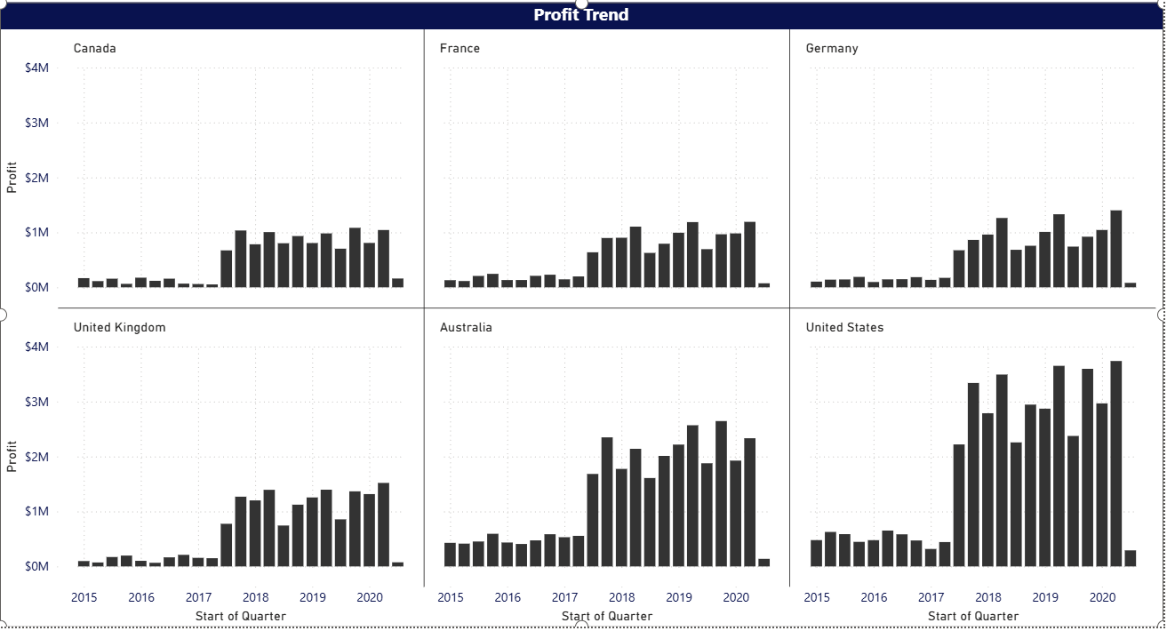 for revenue, profit, and margins, and built geographic and trend-based Power BI visuals.